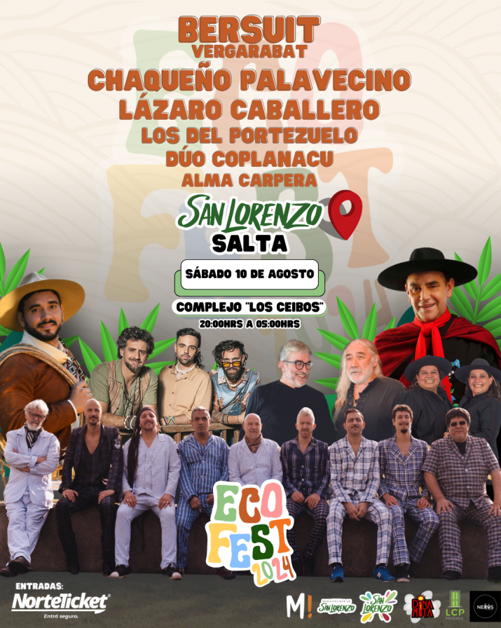 El Eco Fest contará con la participación de grandes artistas nacionales como Bersuit Vergarabat, El Chaqueño Palavecino, Lázaro Caballero, Los del Portezuelo, Dúo Coplanacu y Alma Carpera, entre otros. La diversidad de géneros musicales y la calidad de los artistas aseguran una experiencia única para todos los asistentes.